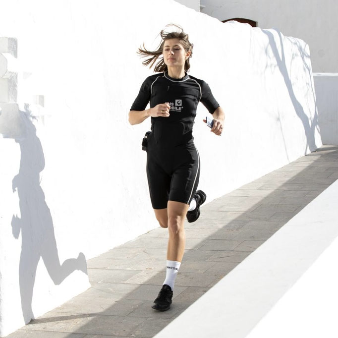 Trainiere unabhängig von Ort und Zeit mit deinem kabellosen EMS Mobile Home+ System. Wähle zwischen zeitsparenden